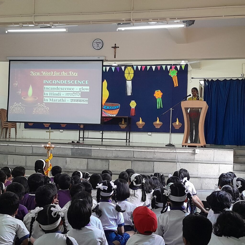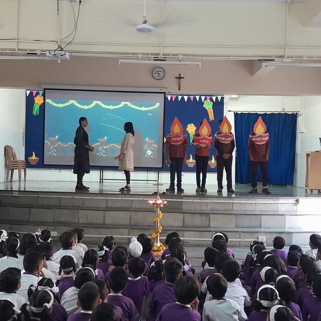 On October 25, 2024, students from Grades 1 to 5 came together to celebrate the beauty of Diwali. They channelled their creativity into making colourful lanterns and decorating diyas, embracing the essence of this joyful festival. The classroom buzzed with excitement as they collaborated, filling their surroundings with laughter and light. The objective was to promote cultural awareness, creativity and community bonding through a fun-filled Diwali celebration activity.