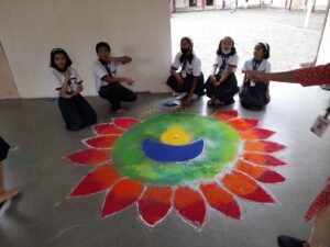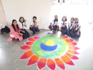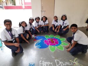 As a part of Diwali celebration, Rangoli making competition was conducted house-wise on 17th October, 2022 for grades 5-9.
