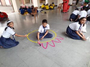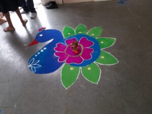 Flower rangoli and colour rangoli both added to the charm of the Activity.