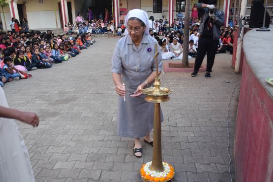 The Feast of our Mother Foundress – St Claudin Thevenet was celebrated on Friday, 1st February 2019, based on the theme “Forgiveness is the virtue of the Brave”. The programme began with a short meaningful prayer service. The sisters were felicitated with floral bouquets. The PTA members expressed their gratitude by presenting a small token of their appreciation to all the sisters of the community. A musical, contemporary skit based on the life of St. Claudine was well enacted by the students that brought out the message of forgiveness. Sr. Simlifer highlighted the values of our Mother Foundress St ClaudineThevenet and wished everyone a “Happy feast”. This was followed by a Jam session . Children were served sweets, cake and frooti. Thereafter a special celebration for the Sisters, the teaching and the non- teaching staff was held in the school hall.