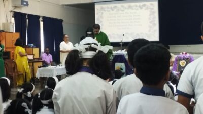 The Celebrant Fr. Leon Mascrehnas in his homily advised students to listen & adhere to the guidance of the elders, parents & teachers.