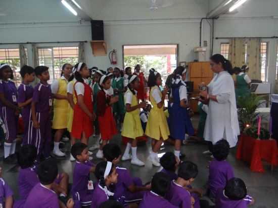 The First Friday Mass was celebrated on Thursday, 5th December, 2019 in the school hall. The theme for the Mass was ‘JESUS IS OUR FIRM FOUNDATION’, prepared by Ms. Maria. Fr. Baptist the celebrant gave an inspiring Homily asserting the need to welcome Baby Jesus with kindness.