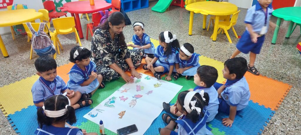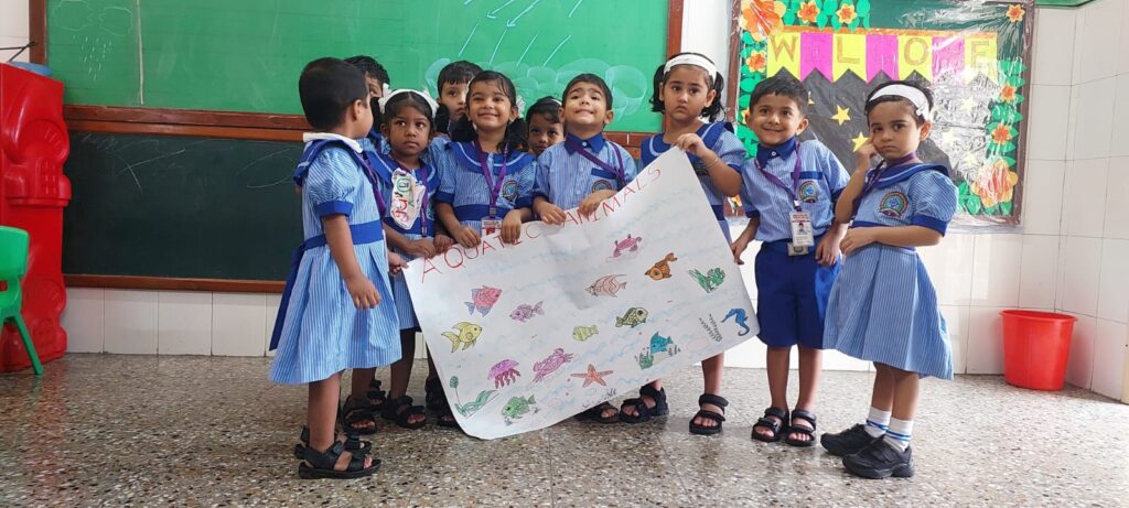 The Prep Section of CJM International School had an activity to make a Fish Aquarium on Tuesday, 1st July 2025. The children coloured various aquatic animals and stuck them on a chart with an aquarium. They enjoyed learning about the different aquatic animals and noted their different features.