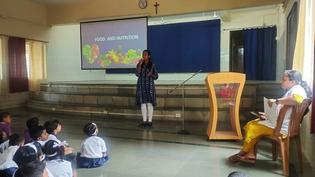 The session aimed to introduce young learners to the importance of healthy eating, basic hygiene, and good habits that help keep our bodies strong and active. Nurse Rose used colorful visuals, interactive questions, and simple explanations to help children understand the significant role that fruits, vegetables, water, and proper hygiene play in maintaining good health.Students were excited to share their own healthy habits and asked many curious questions, making the session lively and participatory. It was heartening to see our little learners take such interest in looking after their health.