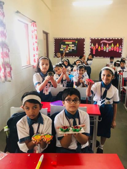 To explore and encourage creativity in children and offer them a platform to show their skills, a “Lantern Making & Diya Decoration” activity was conducted on Friday, 2 November 2018, for the students of Grade I to Grade V. It inspired children to think creatively and promoted artistic excellence. A variety of paper lanterns and beautiful Diyas were presented by the children and appreciated by one and all. This fun-filled activity brought enthusiastic participation from all the students.