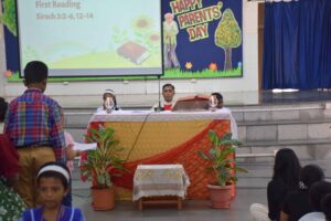 Let’s take a moment to acknowledge the beautiful celebration of Parents’ Day at CJM International School, Kharghar, on Saturday, July 27, 2024. Parents, our pillars of love and support, were honored for their selfless devotion. The day commenced with a beautiful and meaningful liturgy prepared by Ms. Blashina. The liturgy was based on the theme – “Parents- Epitome of Love,” led by Fr. Leon Mascarenhas.  During his heartfelt Homily, Fr. Leon emphasized the profound role parents play in shaping their children’s lives.