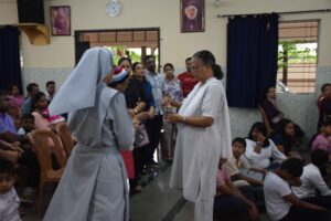 Following the Mass, an entertainment program was organized, featuring heartfelt performances, a moving video presentation, and a touching skit that underscored the depth of parental love. Ms. Philomena and Ms. Maria were the teachers in charge of the programme. The event also included a thoughtful gesture, as children presented their parents and grandparents with handmade cards, symbolizing their deep appreciation.  It was a truly touching display of gratitude and love for the unwavering support and care provided by our parents. Parents and grandparents were served refreshments towards the end of the programme.