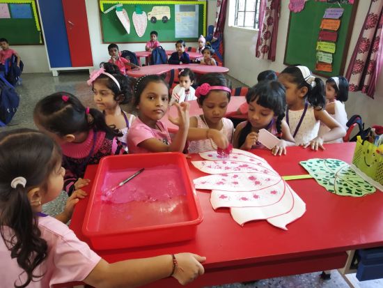 To infuse the concept of the colour Pink, “Pink Day” was celebrated on Thursday, 1 November 2018 in Prep I and Prep II. The tiny toddlers were beautifully dressed in Pink attire. They were involved in activities like ‘Wool Dabbing’ on Ice-cream cut-outs and ‘Finger Printing’ on Lotus cut-outs. The colour Pink stands for unconditional love and understanding. It was a fun and frolic day for the little ones.