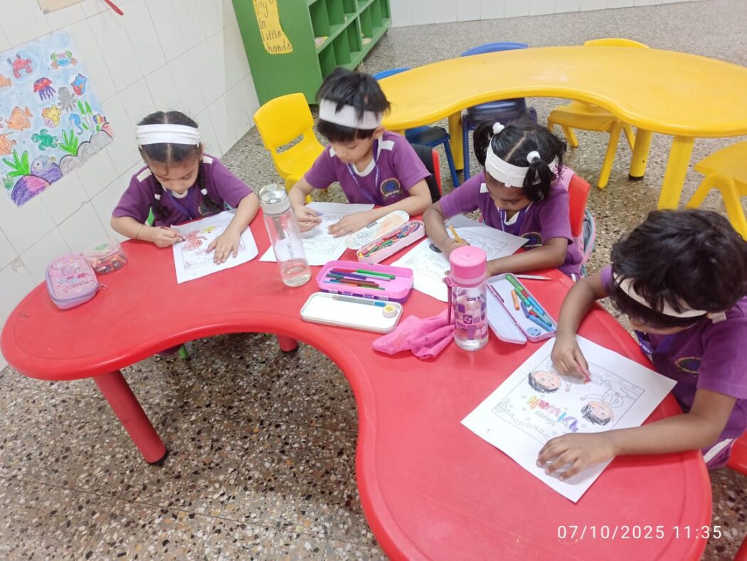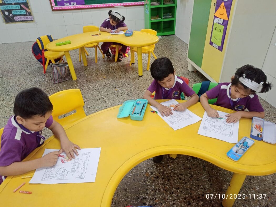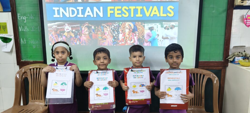 The Prep Section had introduced the theme of ‘Festivals of India’ to the children with the help of a worksheet. The children had to colour and match the different cultural festivals celebrated in India. They were also introduced to the National festivals celebrated by all indians.