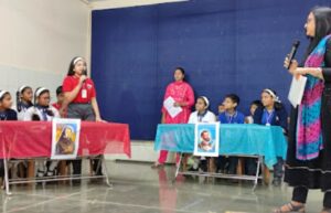 The finalists for the quiz were selected after round 1- oral & round 2- written . The Quiz Master for the competition Ms.Shabnam Astikar was given a warm welcome. The Final quiz had rounds on life of St. Claudine, visual, fact & buzzer rounds.