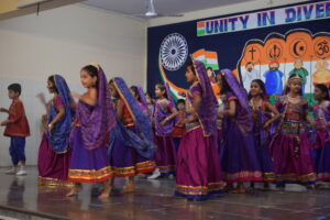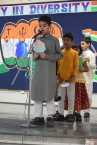 The theme for the program was ‘Unity in Diversity ‘ The program began with a prayer service followed by a skit through which students depicted how to be the change for their country by performing their duties as children. Students paid tribute to their motherland . Various leaders of the country were remembered with gratitude.