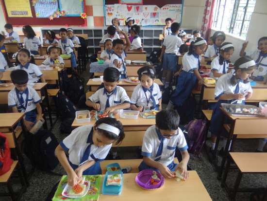 To enhance students about the importance of vegetables in diet and to present them in an appealing manner, “Sandwich Making” Activity was conducted on Monday, 26th August 2019, for Prep I –Grade VI. Students had brought the required ingredients for the same & learnt to creatively present it. The healthy and delicious Sandwiches were served & relished enthusiastically among the classmates.