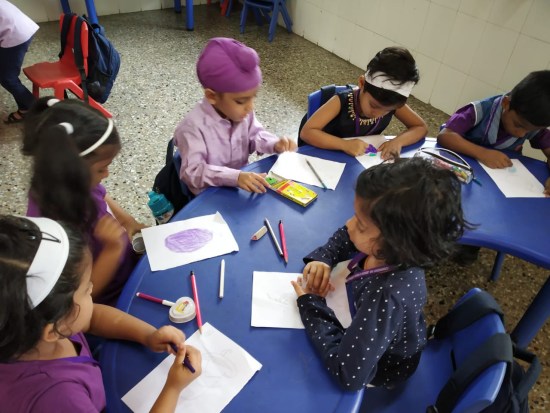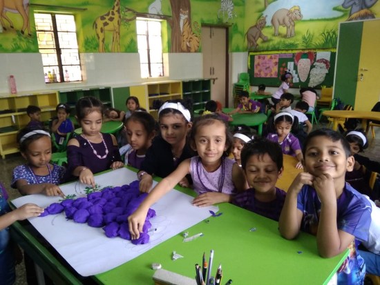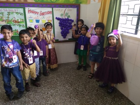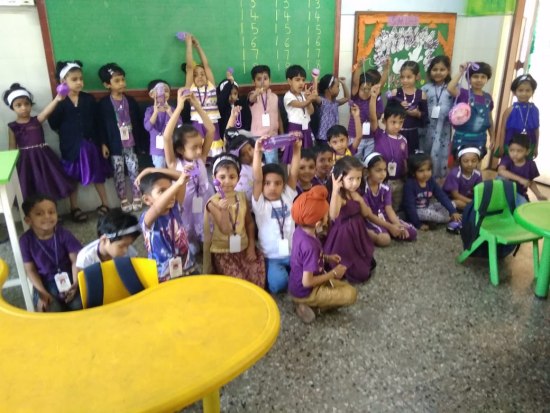 The Pre-Primary Section celebrated “Violet Day” on Monday, 4th February 2019. Colour violet was introduced through activities like drawing, colouring and craft. Children and teachers were clad in violet attire. The entire classroom was decorated in shades of violet. An activity of making a collage of grapes with crepe paper was conducted. Thus, the whole day was celebrated focussing on the colour “Violet”.